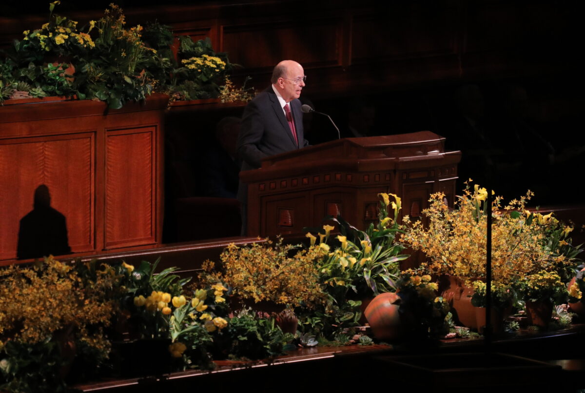 President Dallin H. Oaks, of the First Presidency, told those watching in-person and around the world that Elder Jeffrey R. Holland would not be in the building after contracting COVID-19.