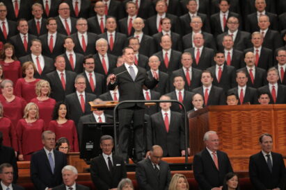 - Ryan Murphy, associate music director for The Tabernacle Choir at Temple Square, leads the crowd in singing “Now Let Us Rejoice” during the morning session of the 193rd Semiannual General Conference of The Church of Jesus Christ of Latter-day Saints at the conference center in Salt Lake City on Saturday, April 1, 2023.