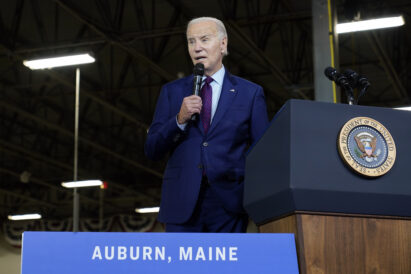President Joe Biden speaks at Auburn Manufacturing Inc. in Auburn, Maine, on Friday, July 28, 2023, before he signs an executive order to encourage companies to manufacture new inventions in the United States.