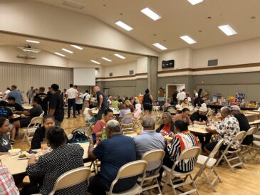 - People gather at an LDS Church in Maui where shelter and food are being provided.
