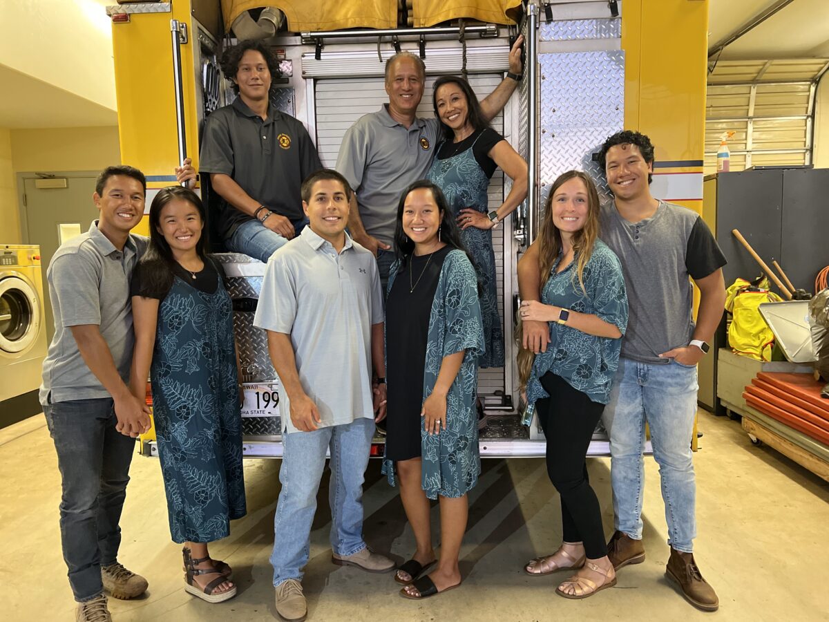 - Aiwohi Firefighters and spouses in front of fire engine in Maui.
