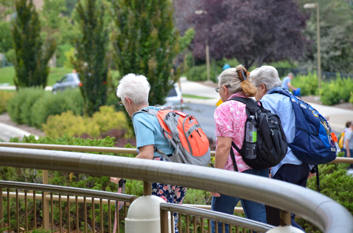 - Three women make their way to their next class at BYU Education Week on Thursday, Aug. 24, 2023.