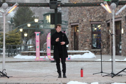 - Connor Ross sings during the Fire and Ice Festival held at The Shops at Riverwoods in Provo on Friday, Feb. 3, 2023.