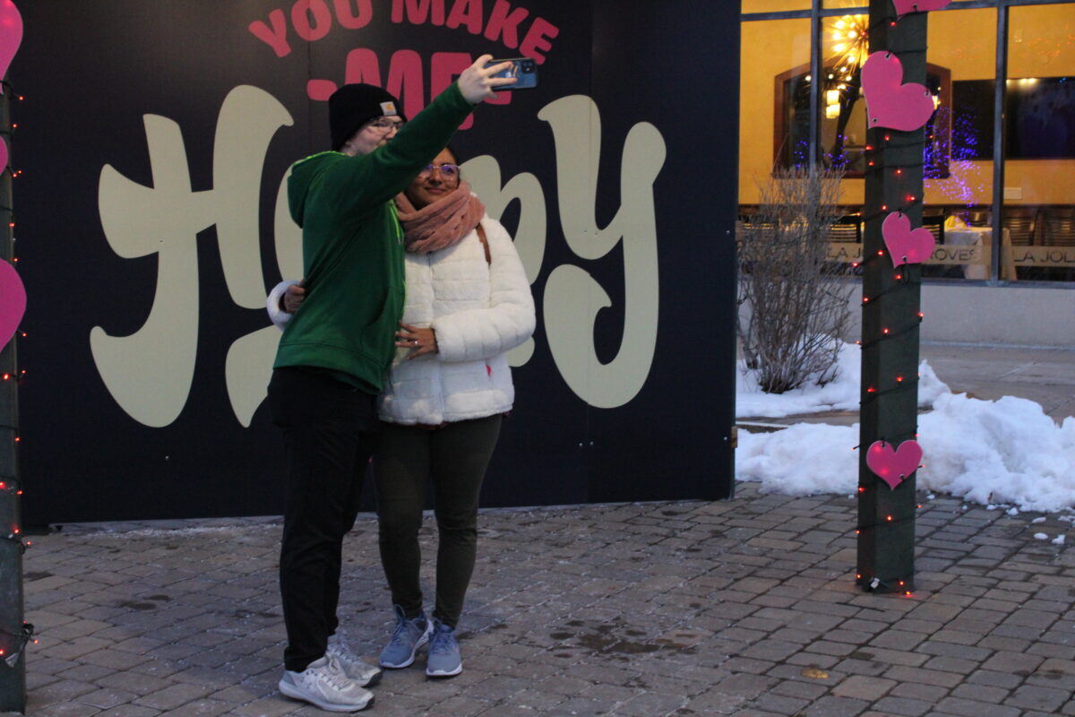 - Attendees pose for a selfie in front of one of the several love-themed backdrops at the Fire and Ice Festival held at The Shops at Riverwoods in Provo on Friday, Feb. 3, 2023.