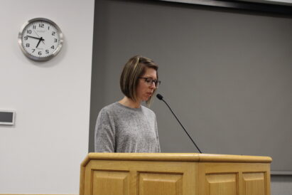 - Parent Carly Ferrin speaks during the public comment portion of the Alpine School District board meeting held at the district office in American Fork on Tuesday, Feb. 7, 2023.