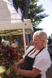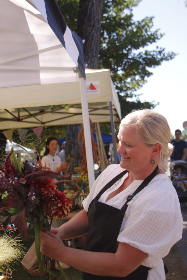 - A flower vendor smiles as she puts together a bouquet at the Provo Farmers Market in Pioneer Park in this undated photo.