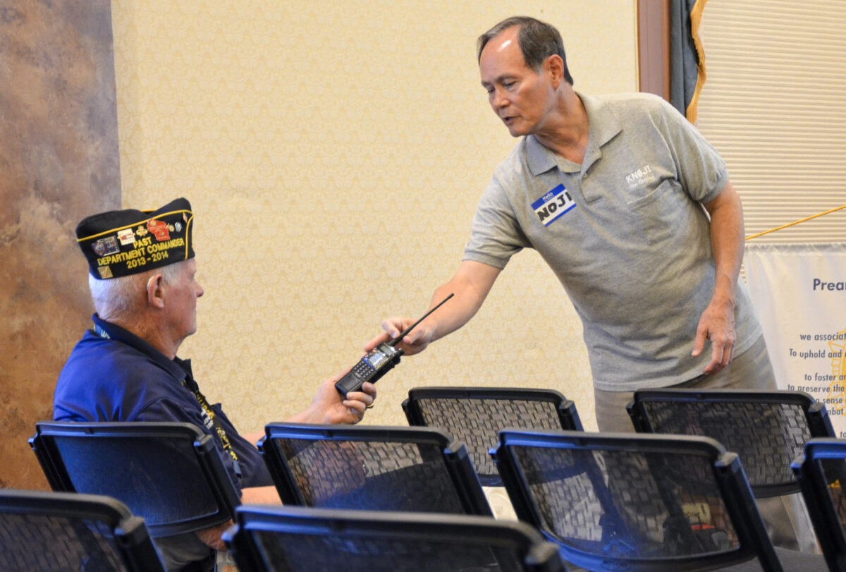 - Noji Ratzlaff hands a Ham Radio to Randy Edwards for a demonstration on their importance during the American Legion open house in Provo on Thursday, June 15, 2023.