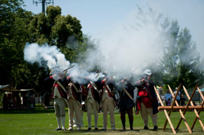 - A line of Revolutionary War soldier reenactors fire blanks during a battle at America’s Freedom Festival’s Colonial Heritage at SCERA Park in Orem in this 2014 file photo.