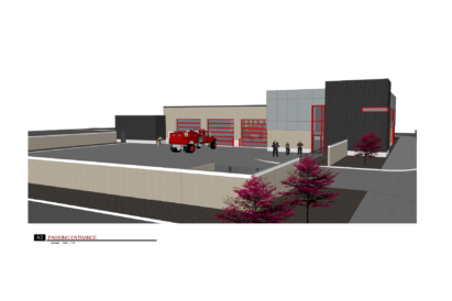 - Rendering of parking entrance facing 100 South for the new fire station. Courtesy Provo City