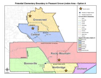 The school board has proposed several options for potential boundary mergers. One would combine the current North Point and Meadow boundaries into Lehi, another considers splitting the Central boundary into two sections — the Valley View boundary and a new Central boundary that would include part of the current Grovecrest area.