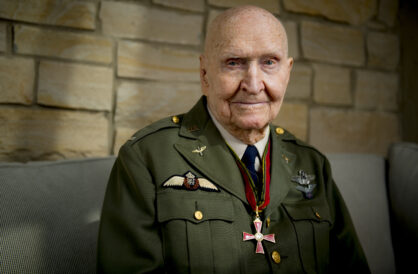 - Gail Halvorsen, also know as the “Candy Bomber,” poses for a portrait at his son’s home in Midway on Wednesday, Oct. 7, 2020.