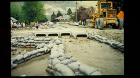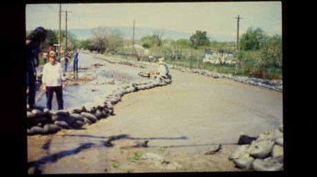 - Sandbags contain flood waters in Provo during the 1980s.