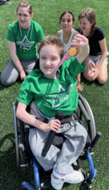 Peer mentors give encouragement and support to their Super Stars as they compete, in some cases running alongside them in their races and always giving high fives, hugs, fist bumps and cheers before and after their events, no matter the outcome.