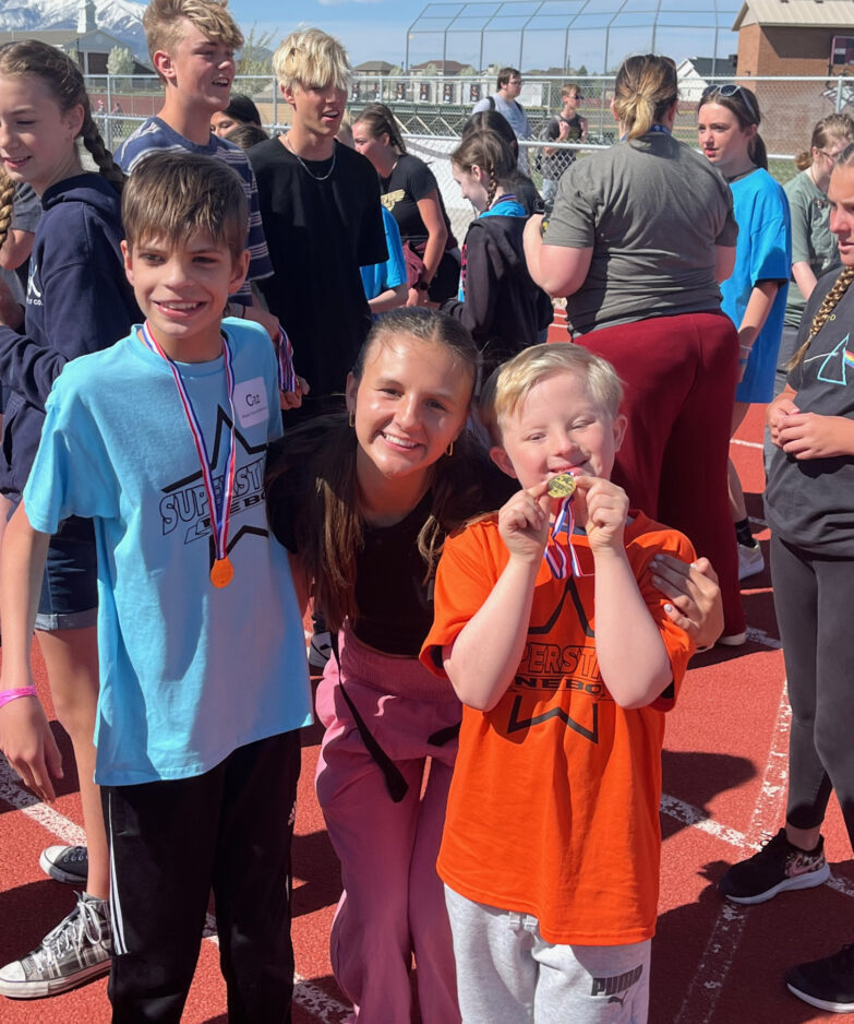 - Participants pose for a photo with their medals at the Super Stars Track and Field Day at Maple Mountain High School on Tuesday, May 4, 2023.