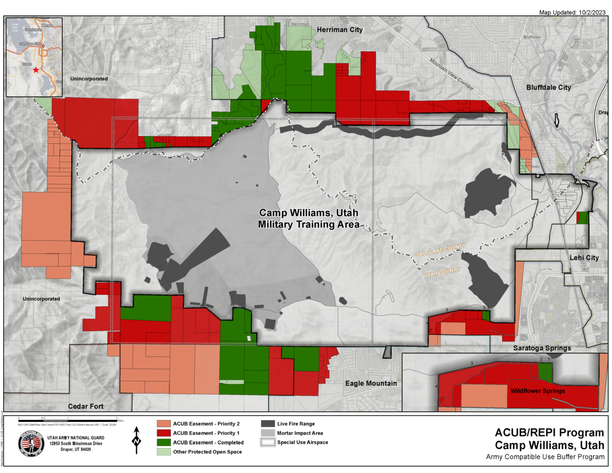 The Utah National Guard assisted the cities in acquiring the land through the Army Compatible Use Program, or ACUB, which balances the impact development has on military installations and the impact military training may have on a neighborhood sitting on the boundaries of the installation. ACUB minimizes the impact by creating a buffer between a military installation and nearby neighborhoods. In this case, the cemetery is acting as a buffer while still providing a necessity to the Saratoga Springs community.