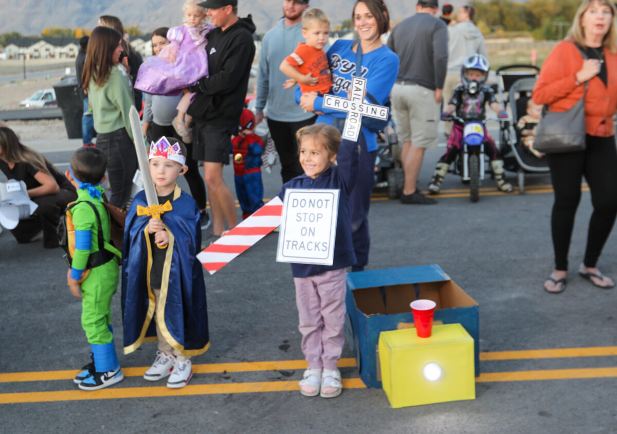 - A little girl dresses up as a railroad crossing sign for the costume contest held at the grand opening of the Spanish Fork Parkway-Union Pacific railroad crossing in Spanish Fork on Tuesday, Oct. 24, 2023.