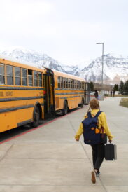 - A student walks to her bus outside of Provo High School on March 29, 2023.