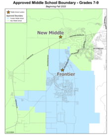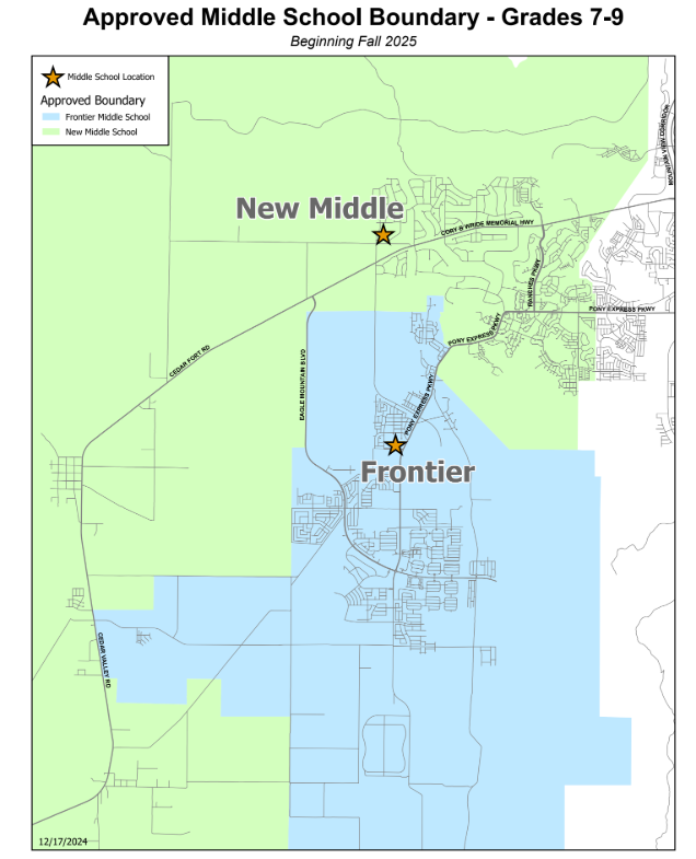 According to the boundary map, students living in the area surrounding Cory Wride Highway near Ranches Parkway and Cedar Fort Road will be served by the new school. Students living in the area surrounded by Pony Express Parkway and east of Eagle Mountain Boulevard will be served by Frontier Middle School.