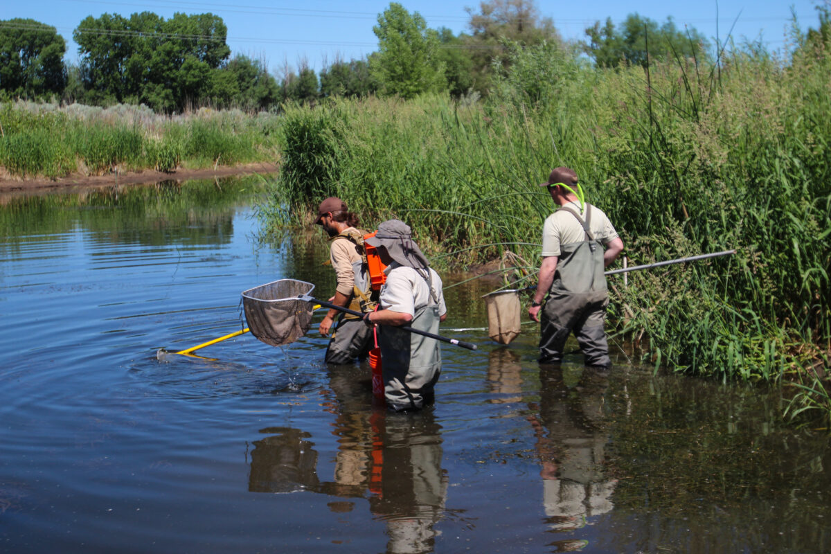 On Wednesday, Nagy and two of his colleagues ventured into the small pond, which is tucked between Hobble Creek and some farmland, to survey for June suckers.