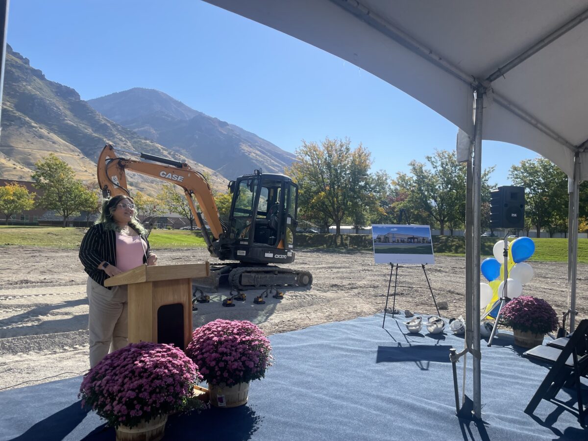 - Liz Beity, a former Boys & Girls Clubs of Utah County member, speaks about the impacts the club had on her as a youth during a groundbreaking ceremony Wednesday, Oct. 9, 2024.