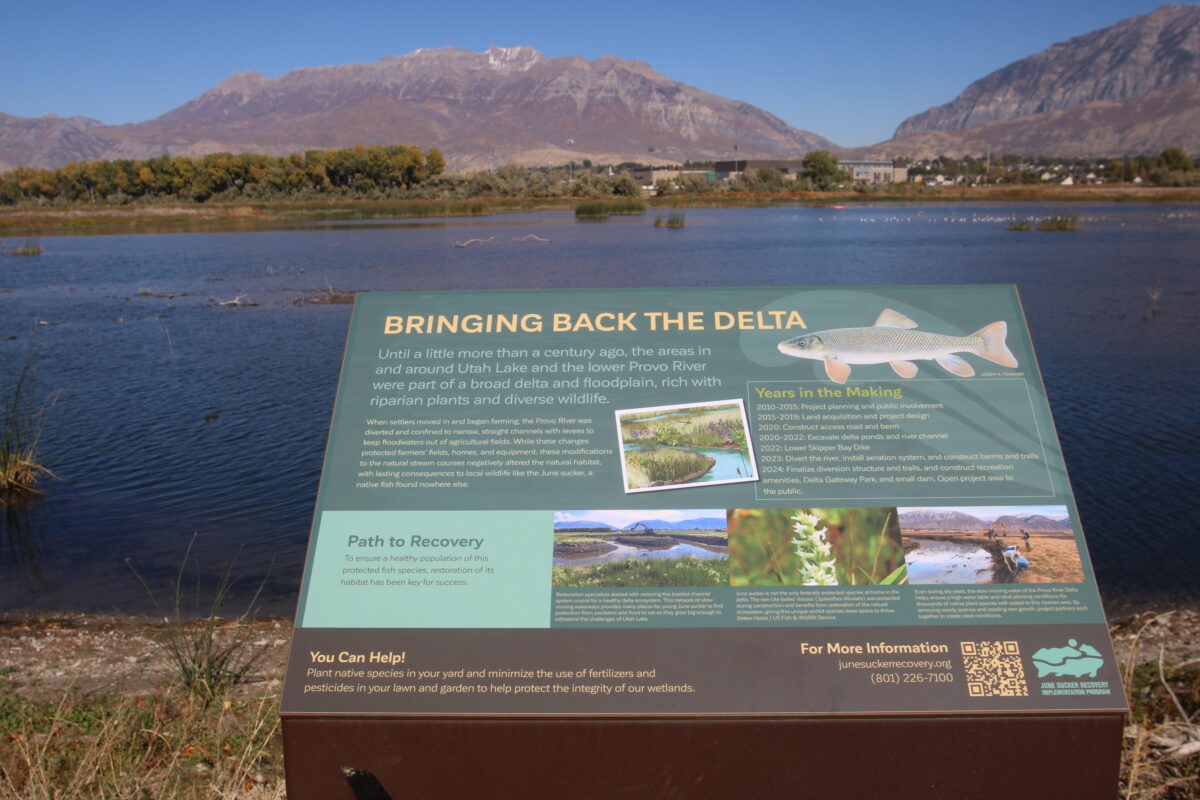 - An educational sign along the newly constructed trail near the Provo River Delta is shown Saturday, Oct. 26, 2024.