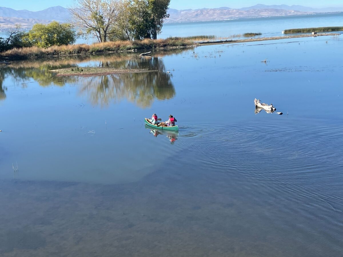 - A couple canoes in the reconstructed Provo River Delta on Saturday, Oct. 26, 2024.