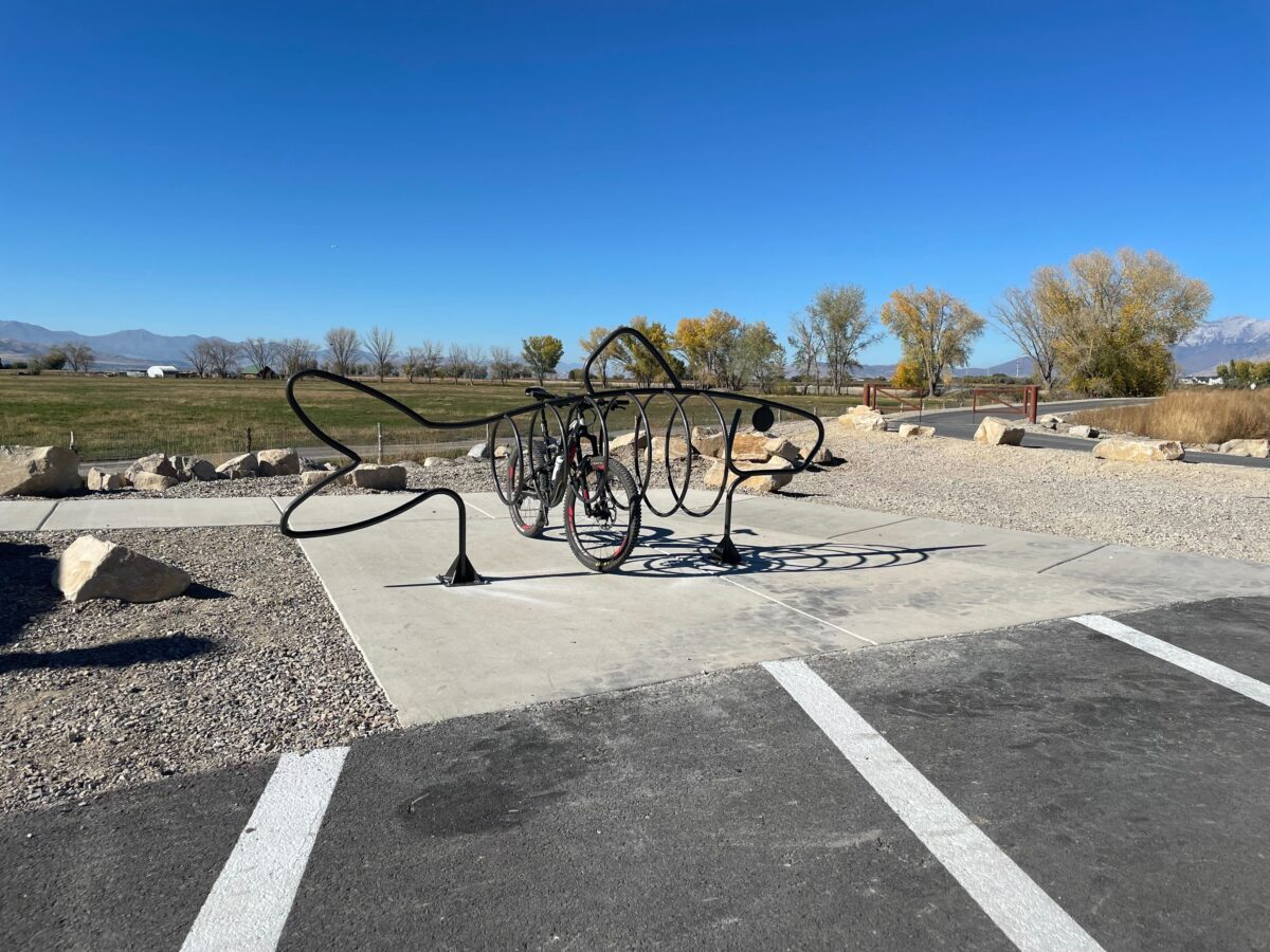 - A bike rack in the shape of a fish is shown at new Skipper Bay Trailhead near the Provo River Delta on Saturay, Oct. 26, 2024.