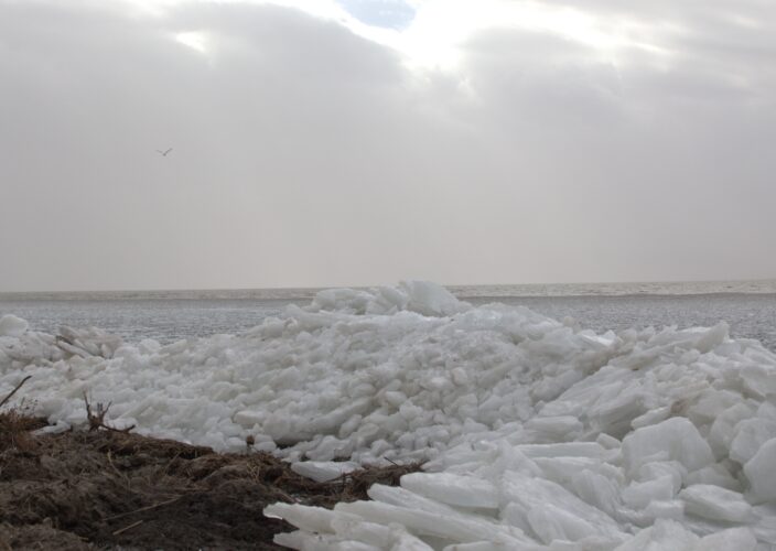 It is not atypical to see ice build up along the Utah Lake shoreline during the winter months.
