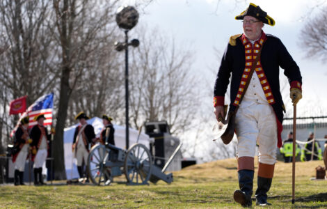 BOSTON (AP) — Reenactors in 18th-century military coats and tricorn hats filled the pews of one of the nation's oldest Catholic Churches on Tuesday before firing muskets outside and marching through neighborhood streets, marking the 250th anniversary ...