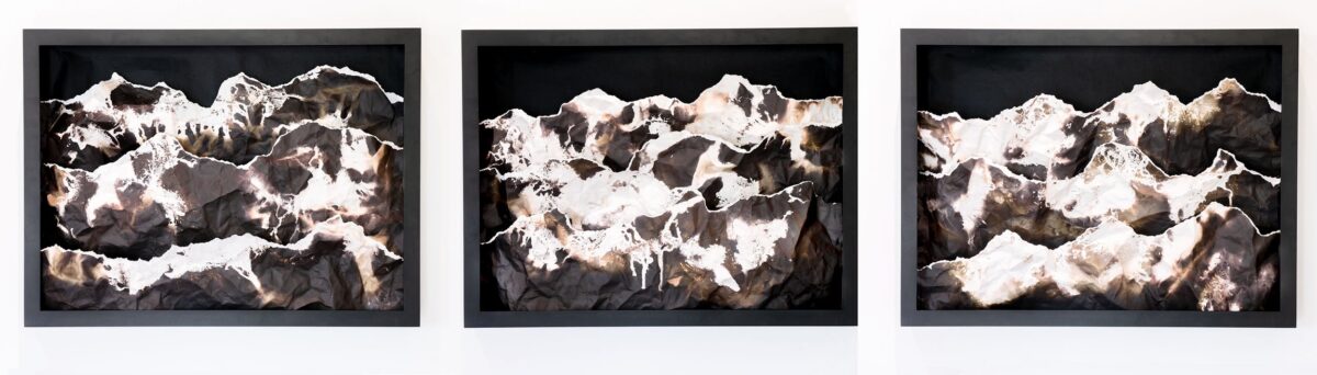 Elizabeth Stone’s oil-based chemigrams explore the scars left on both land and communities by extractive industries, such as mining and agriculture. Her work serves as a poignant reflection on the environmental damage caused by such practices, and how these marks are mirrored in the communities that depend on the land.