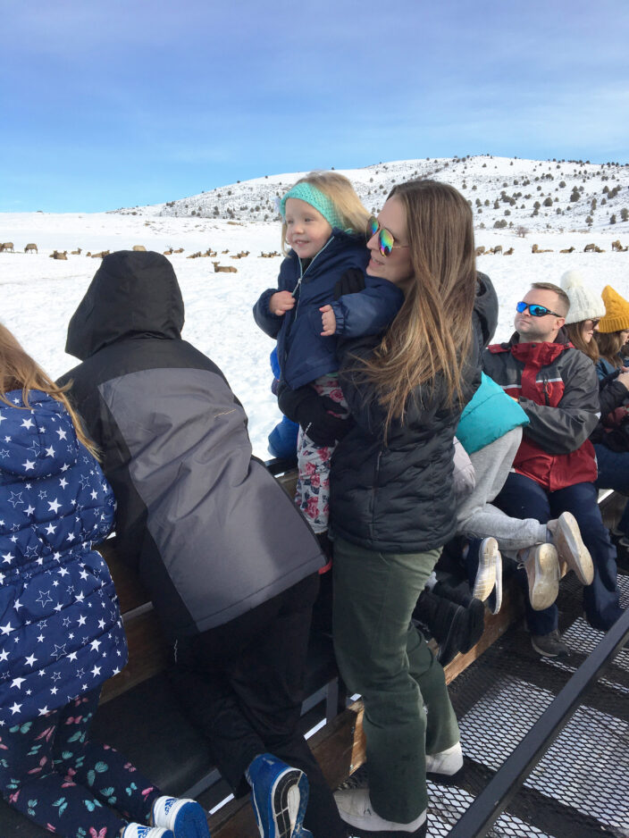Visitors enjoy a wagon ride through the elk feeding grounds at Utah's Hardware Ranch.