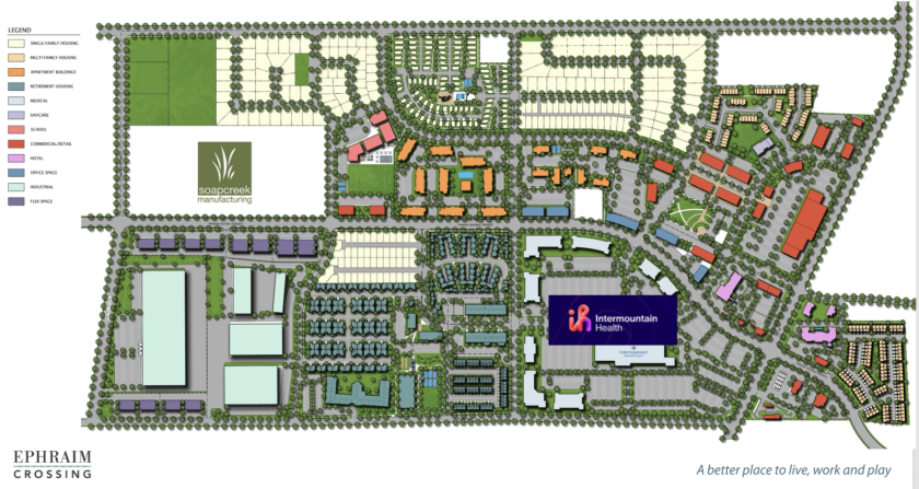 Two key anchors of the development include a new $100 million Intermountain Health facility and Soapcreek Manufacturing, both of which are expected to create hundreds of local jobs.