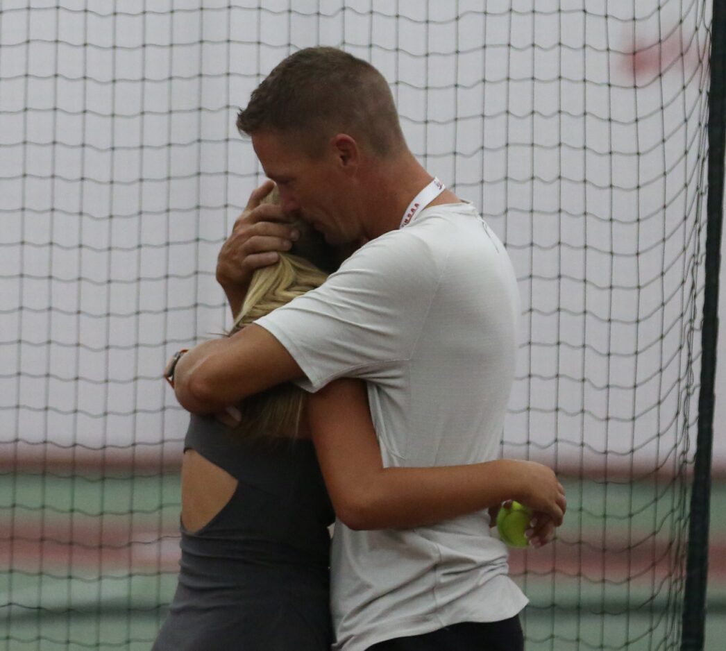 - Skyridge Coach Ben Armstrong, Andi’s father, gives Andi a big hug following her championship match on Saturday