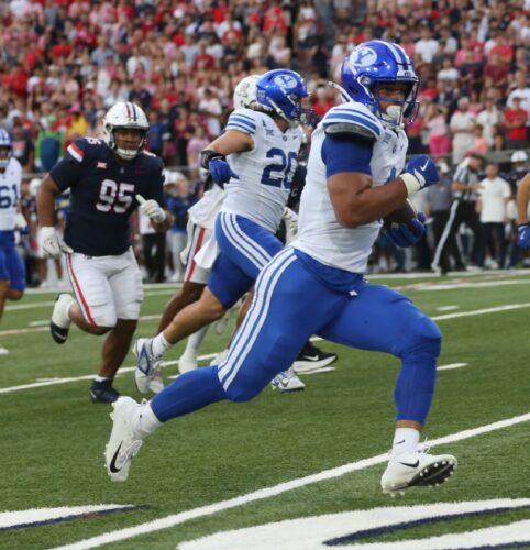 BYU running back LJ Martin runs for a touchdown vs ArizonaBYU football beat reporter Brandon Gurney gives his grades for the Cougar’s position group and coaches for Saturday’s 33-27 double overtime win over Arizona at Arizona Stadium