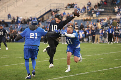 Talmage Gunther (2019-2023) caught a touchdown pass for Team Royal along with Colby Pearson (2013-2016.) Adding a touchdown grab for Team Navy was Dax Milne, who played for BYU from 2018-2020.