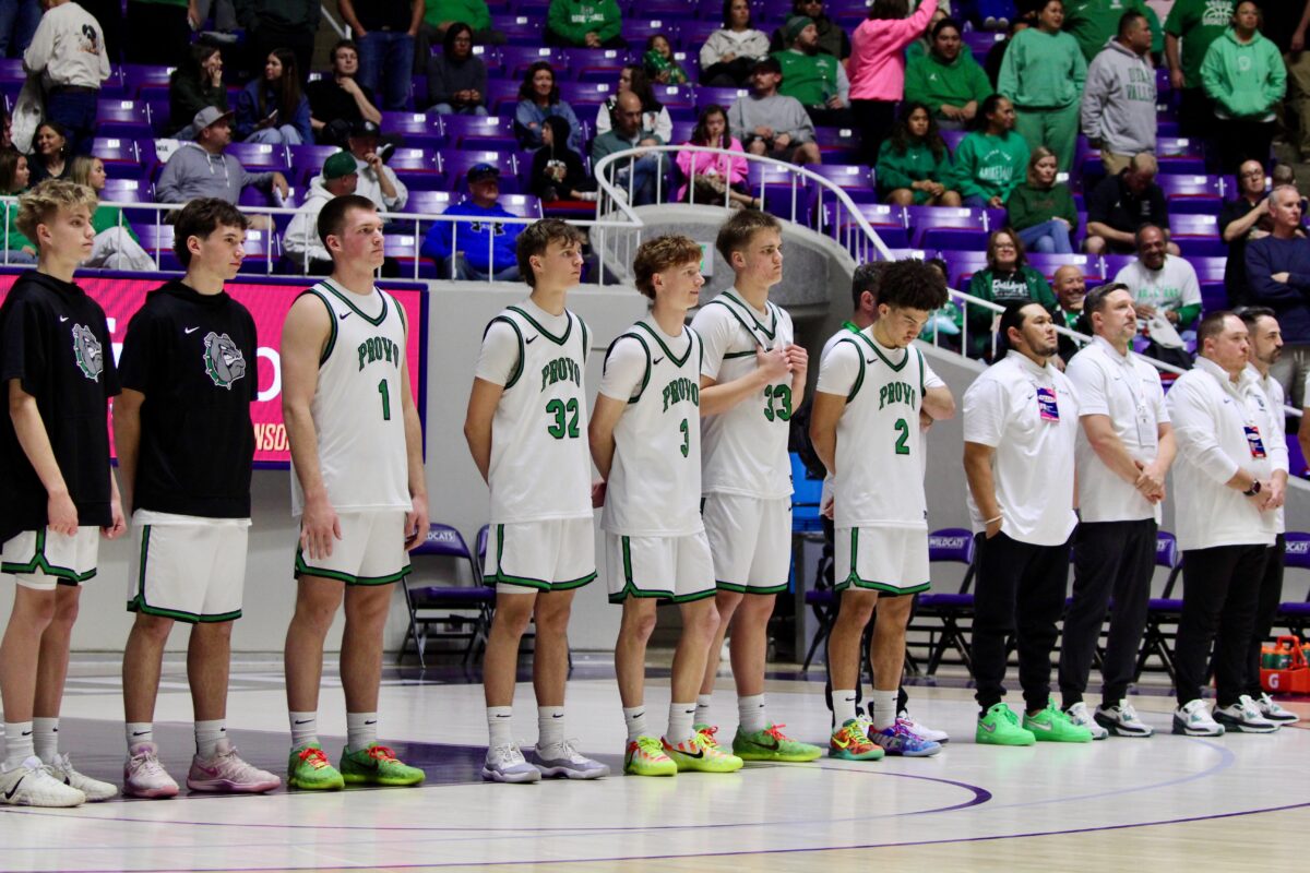 - The Provo High boys basketball team lines up for the national anthem before the UHSAA 4A boys basketball state championship on Saturday, Feb. 21, 2026, at the Dee Events Center at Weber State University in Ogden.