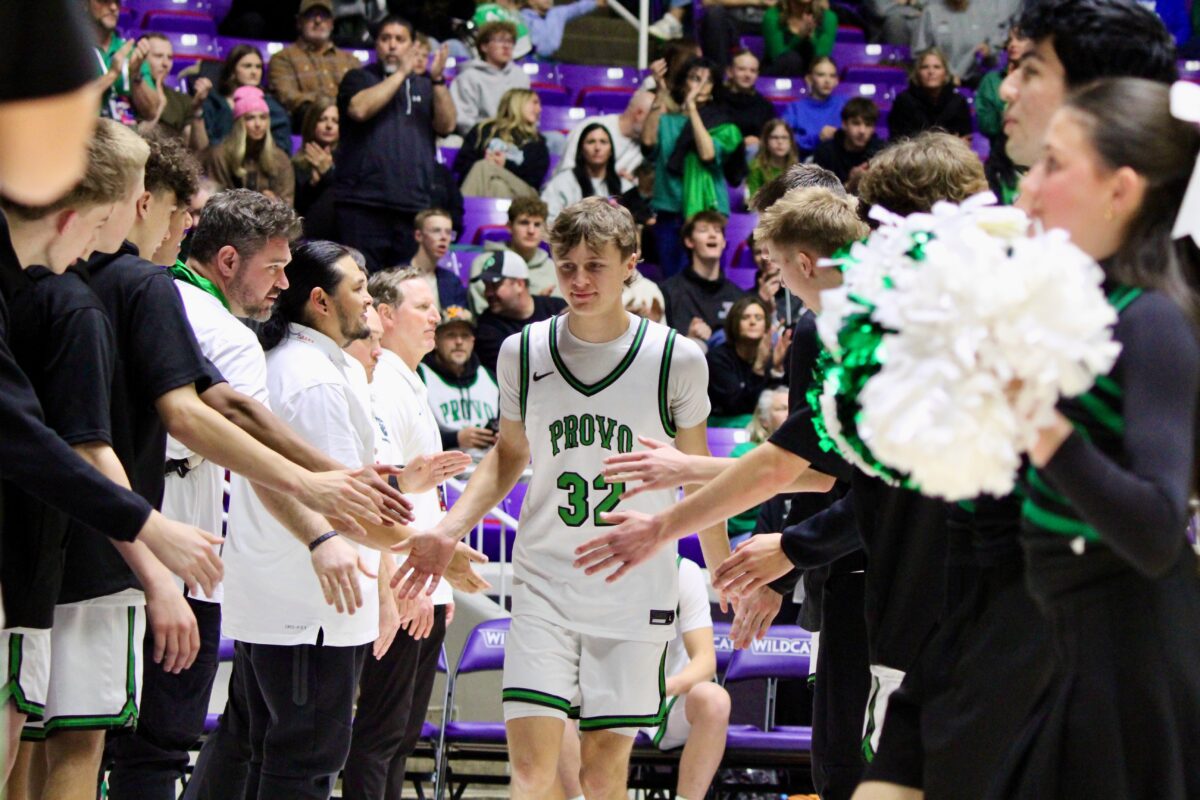 - Provo High’s Lucas Castagnetto goes through the starting lineups before tipoff of the UHSAA 4A boys basketball state championship on Saturday, Feb. 21, 2026, at the Dee Events Center at Weber State University in Ogden.