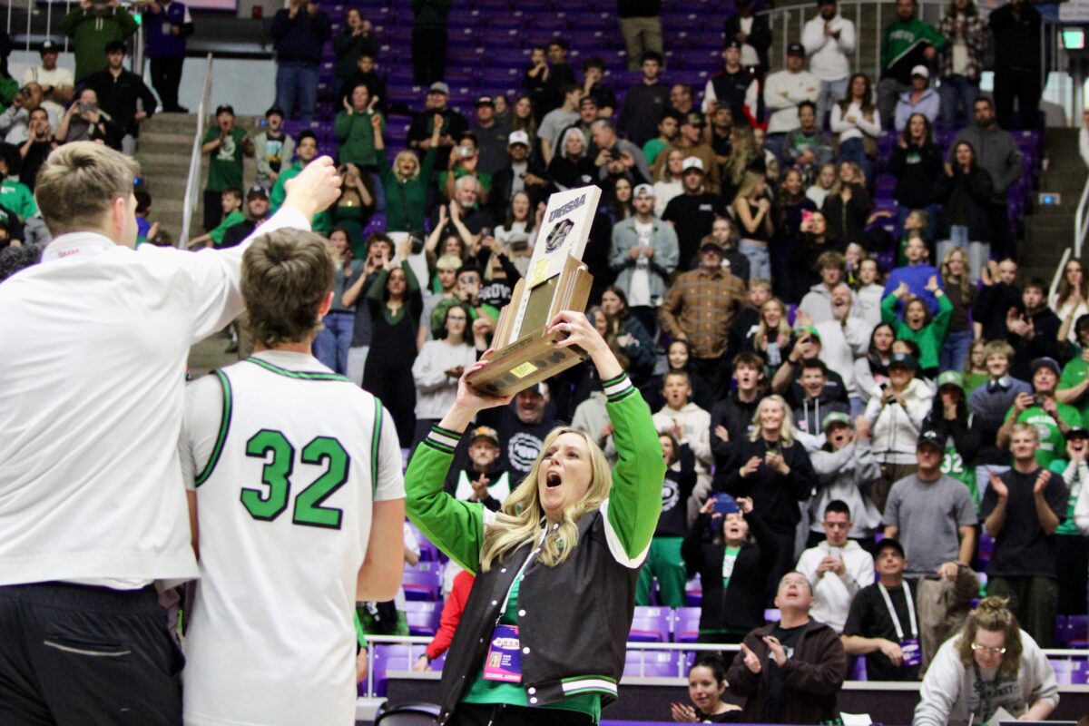 - Provo High principal Kami Alvarez presents the school’s boys basketball program with the UHSAA 4A boys basketball state championship trophy following a win over Hurricane on Saturday, Feb. 21, 2026, at the Dee Events Center at Weber State University in Ogden.