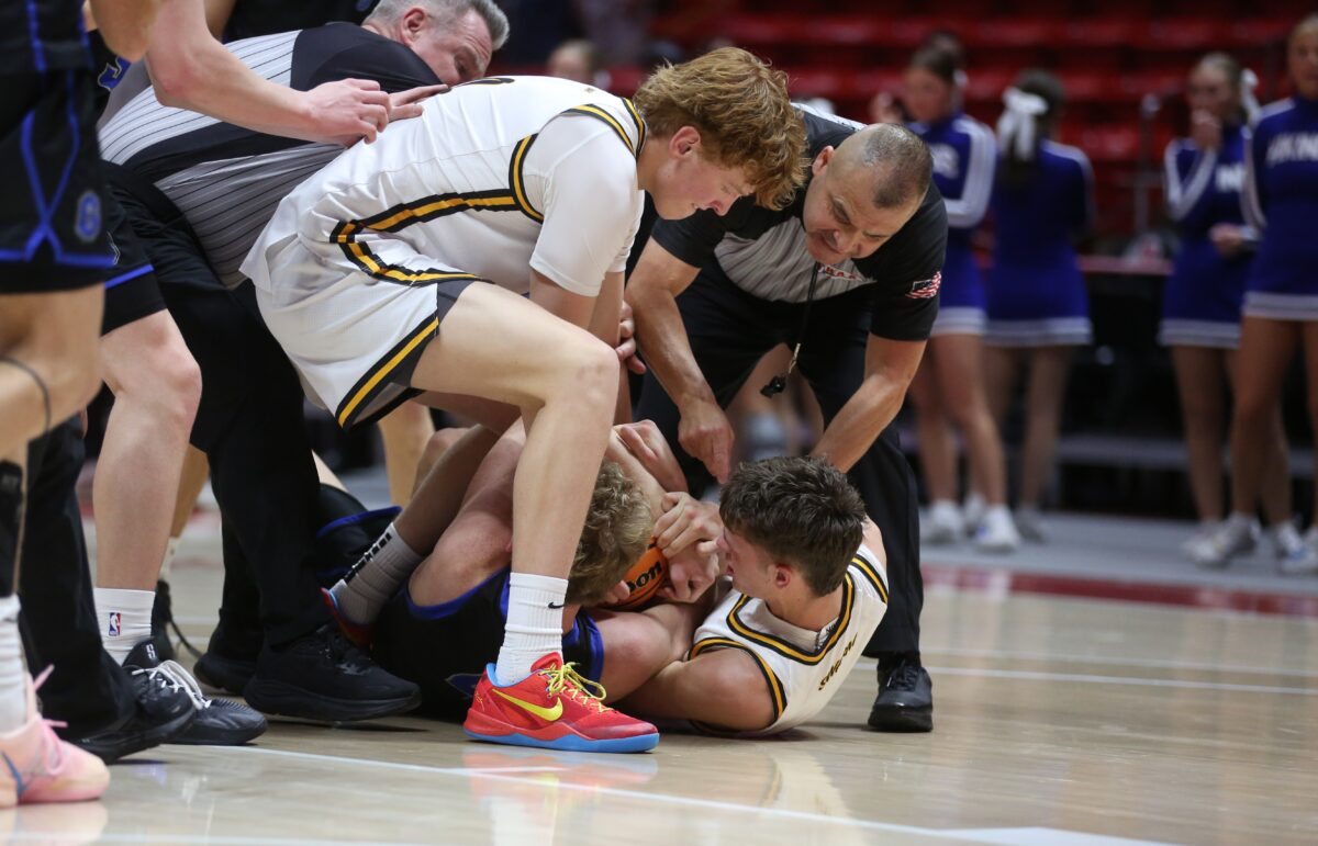 - Players have to be separated during Pleasant Grove’s gutty 66-58 comeback win over Wasatch during the 5A state quarterfinals. February 23, 2026