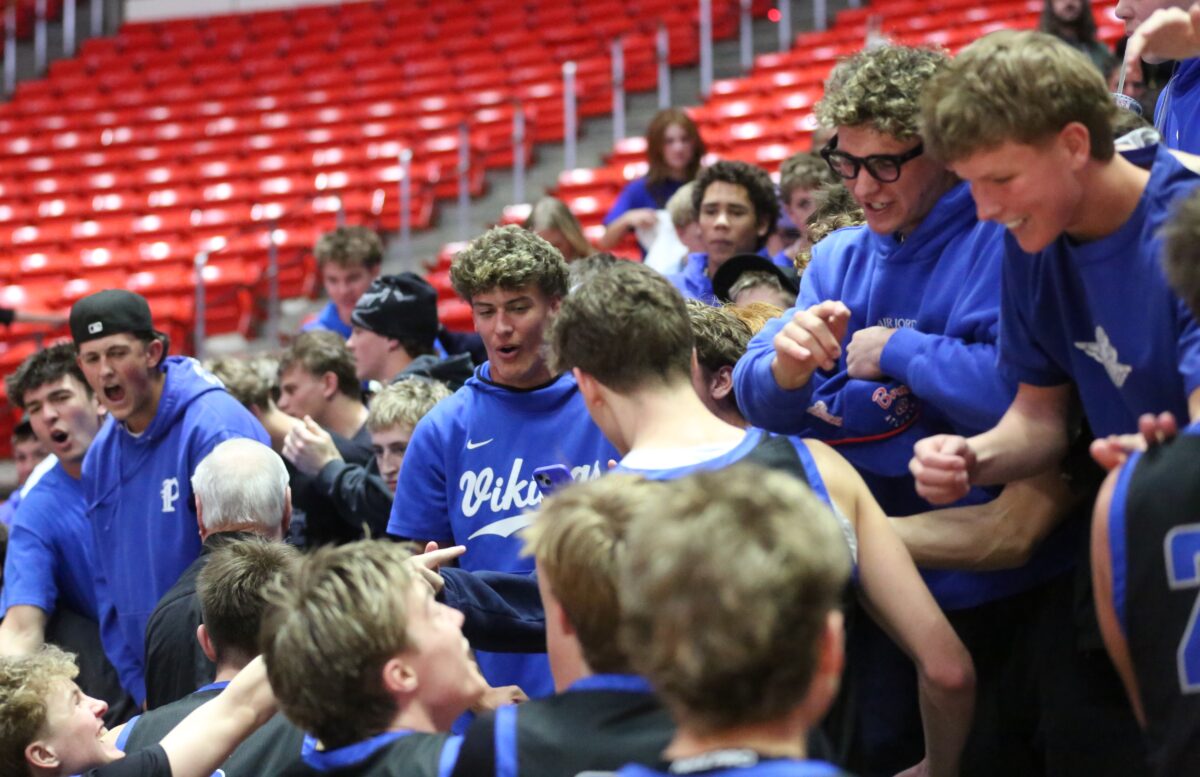 - Pleasant Grove students celebrate with the team following the Viking’s thrilling 66-58 win over Wasatch on Monday. February 23, 2026