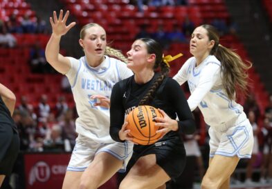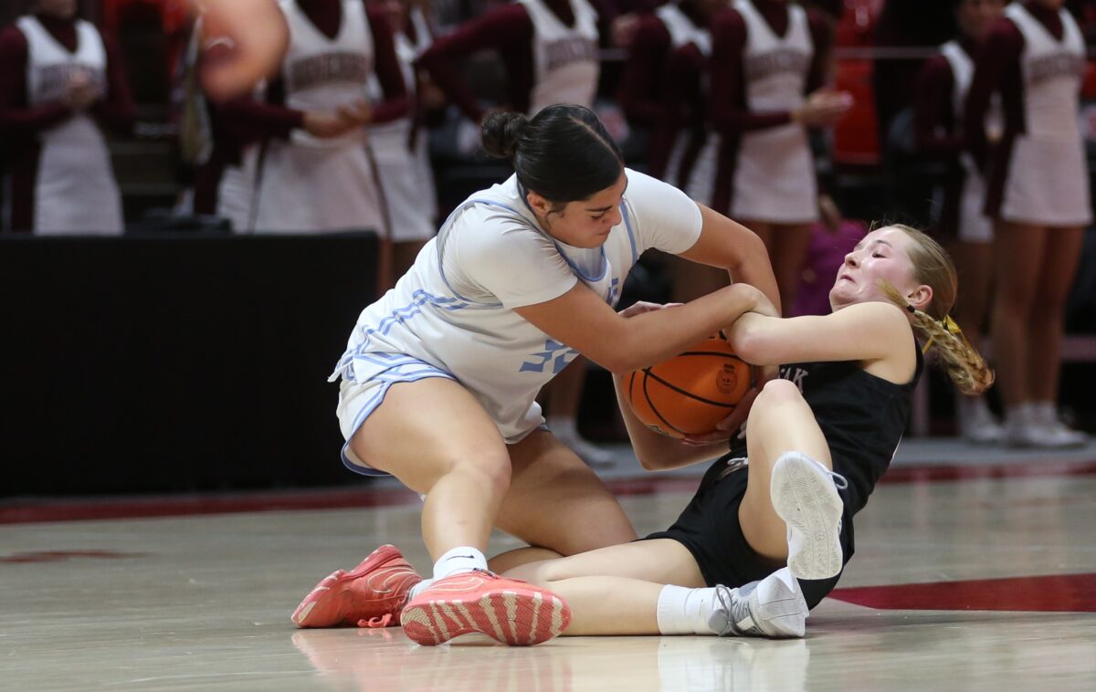 - Westlake’s Mia Foster battles for a loose ball during semifinal action on Thursday at the Huntsman Center. February 26, 2026