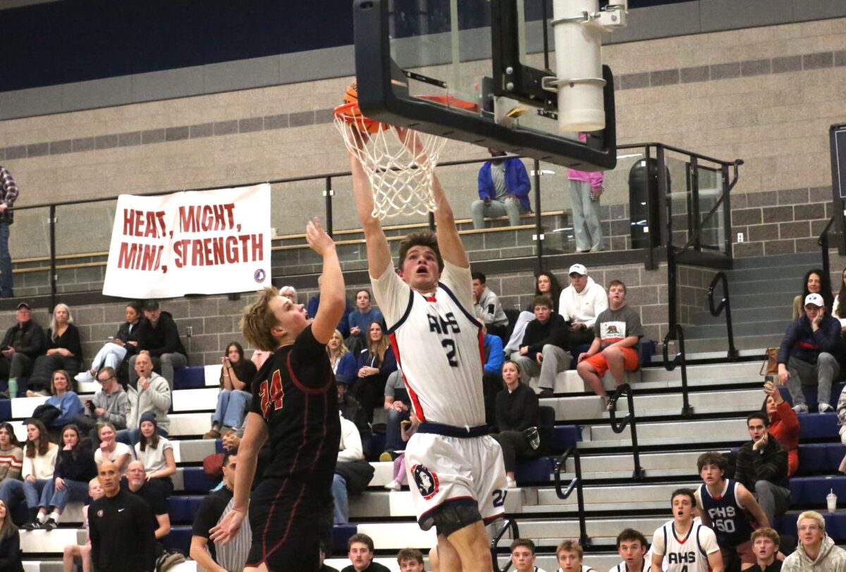 - American Heritage forward James Matsen scores on a fast break dunk during his team’s 71-61 win over Logan. January 14, 2026