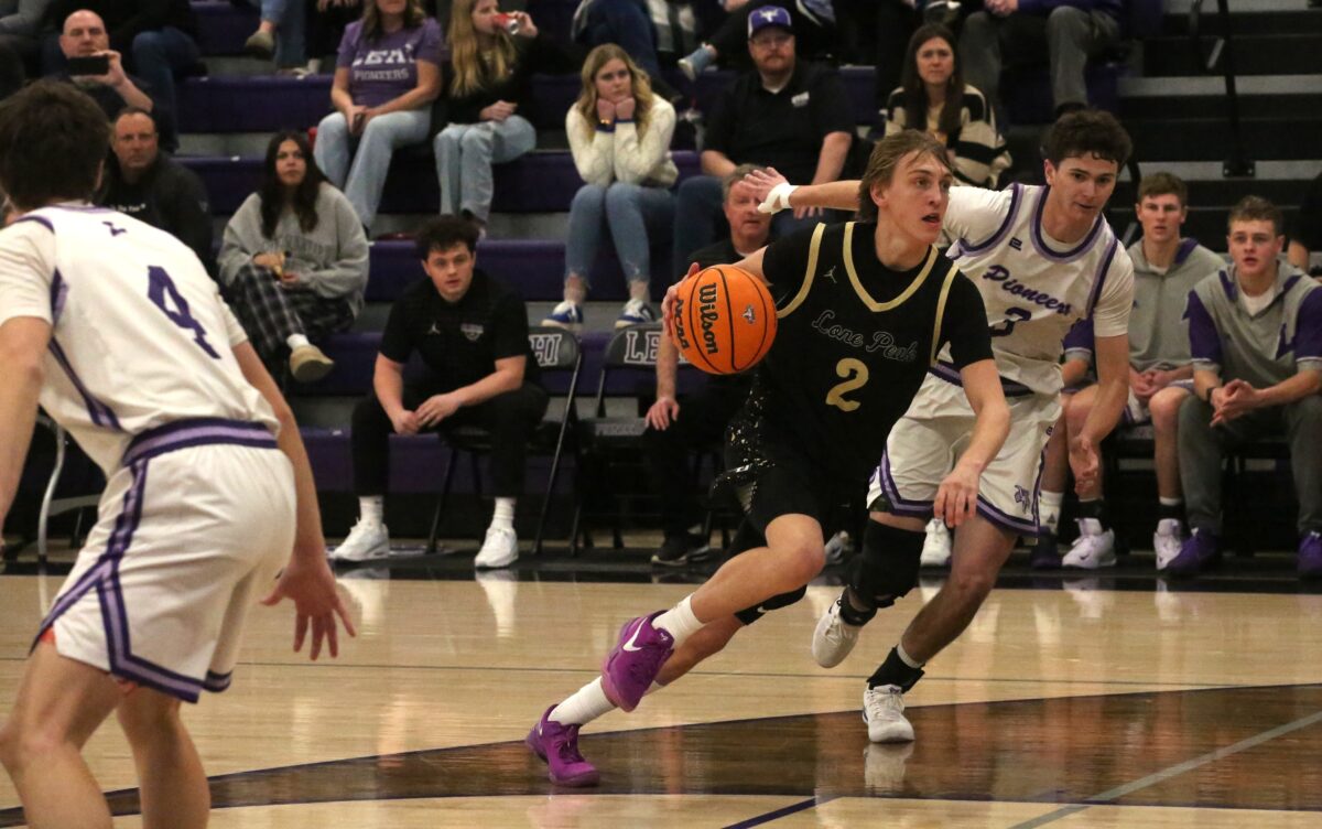 - Lehi guard Tillman Huish drives it under pressure during the Pioneer’s 97-67 win over Lone Peak on Tuesday. January 20, 2026
