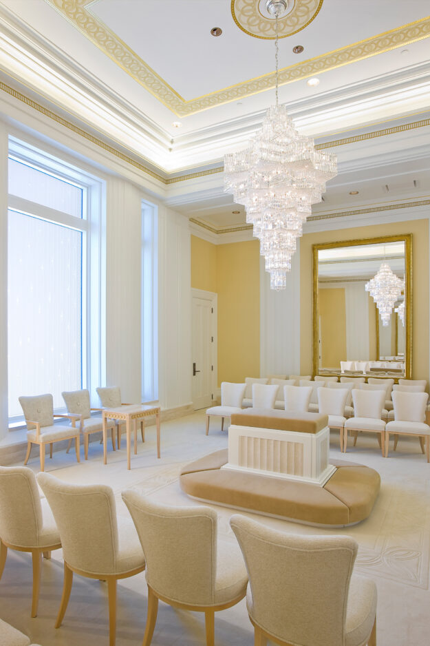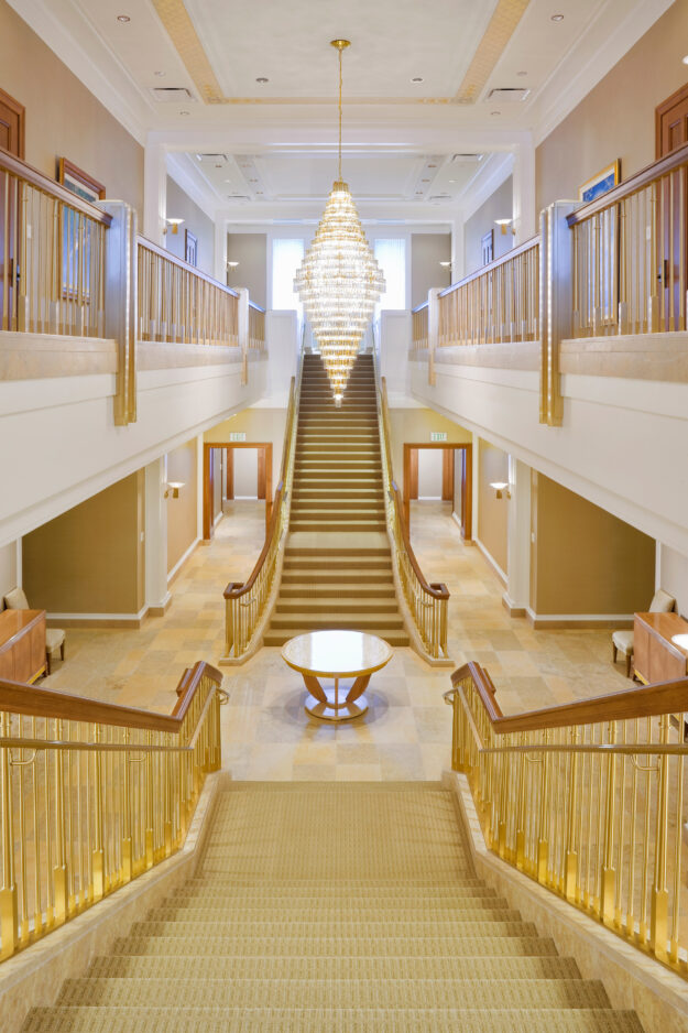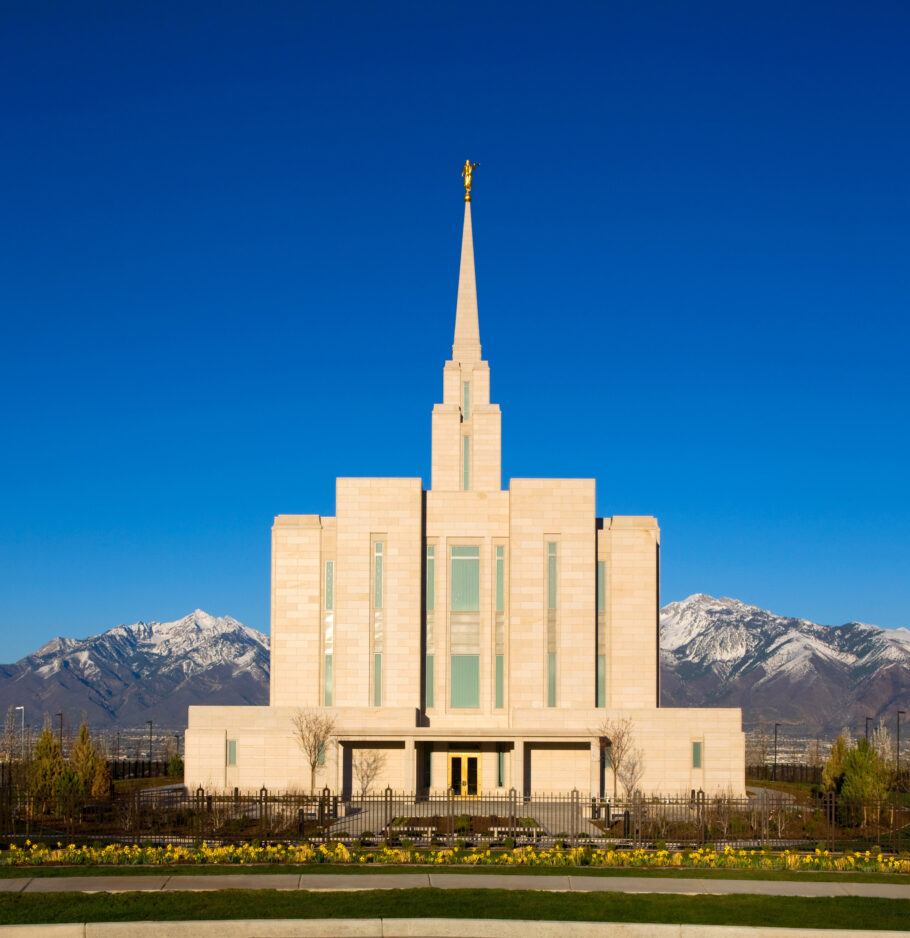 According to The Church of Jesus Christ of Latter-day Saints’s Web site LDS.org, the Oquirrh Mountain temple required: 17,096 exterior stones, 47 miles of linear wood, 4,668 cubic yards of concrete, 407 tons of structural steel, 80 miles of electrical wiring, and 184 individual doors, not to mention the morning prayer offered each morning before construction.