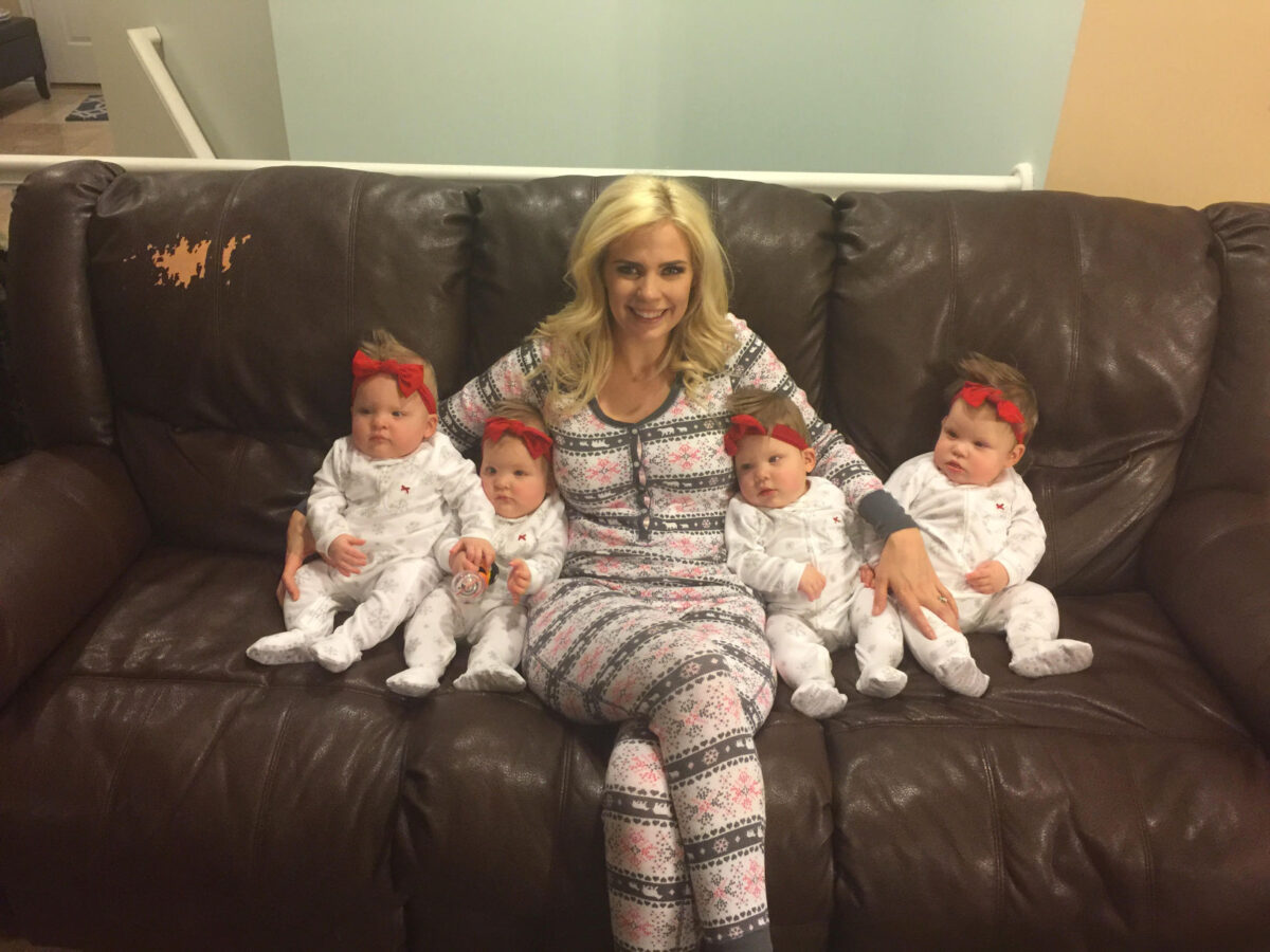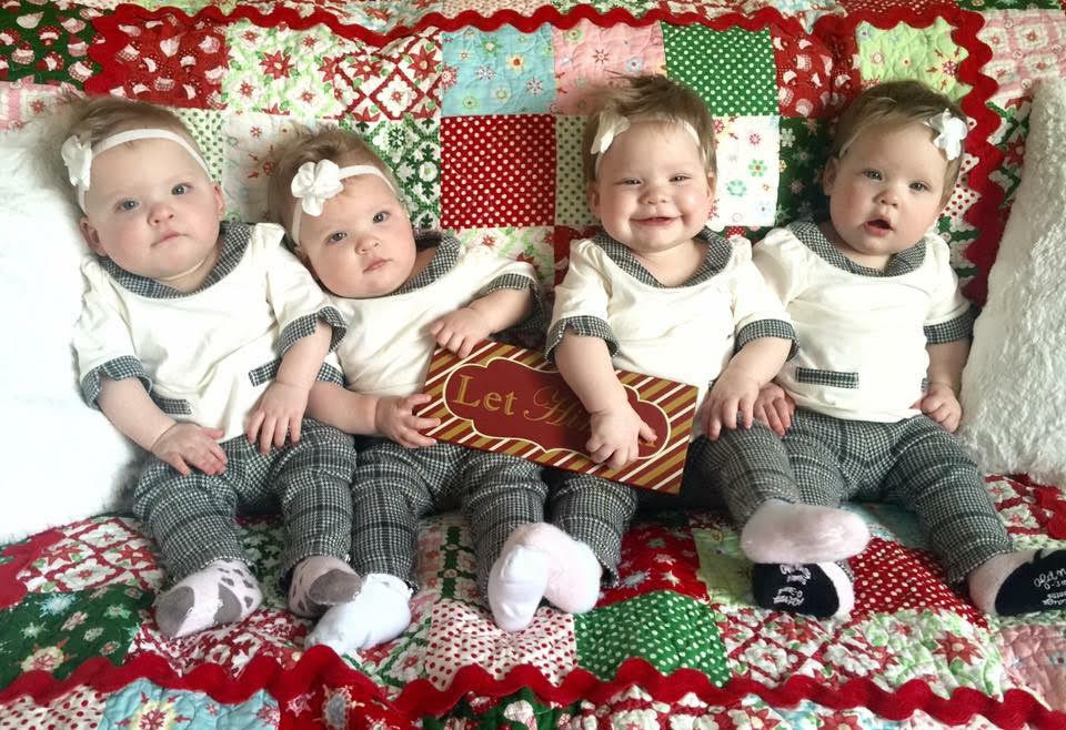The girls — who were about 2 lbs. each at birth — are growing, each weighing between 18 and 22 lbs. They all crawl and have recently started pulling themselves up on furniture. Indie is the only one left with a gummy smile, as the other three have at least one tooth.