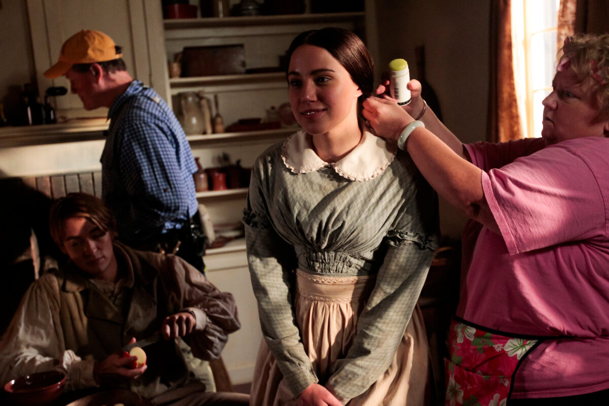 In the film, Daines, 25, portrays Emma as a young newlywed in Harmony, Pa. Without makeup and the ringlets the prophet’s wife is usually portrayed wearing, Daines shines a more authentic light on Emma’s everyday life of housework, washing clothes and kneading bread.