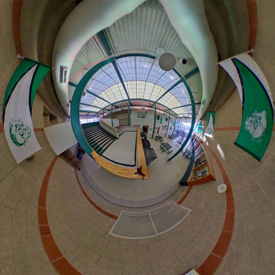 A panoramic view of the space outside the Provo High School gymnasium captured on a 360-degree camera.