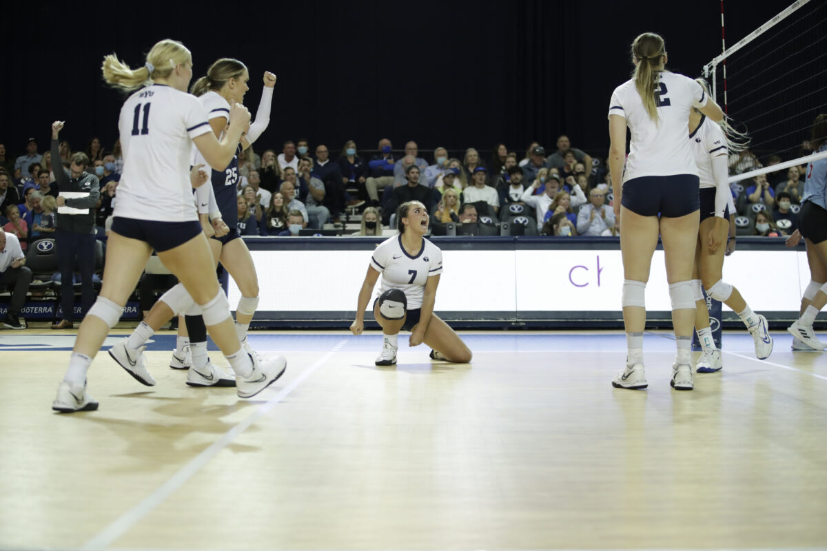The No. 5 BYU women’s volleyball team won its 18th straight match on Saturday, battling past Loyola Marymount 3-1 (25-20, 24-26, 25-21, 25-22).
