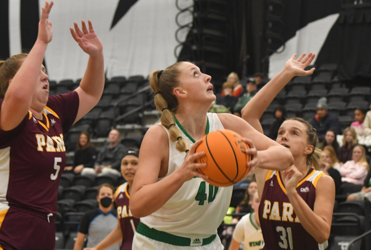 UVU junior Josie Williams goes up for a shot during the Wolverine win over Park in the season-opener at the UCCU Center in Orem on Tuesday, Nov. 11, 2021. (Jared Lloyd, Daily Herald)