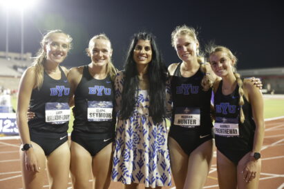 - Four BYU women’s track All-Americans pose for a photo with coach Diljeet Taylor at the NCAA Track Championships in Austin, Texas, on Saturday, June 10, 2023.